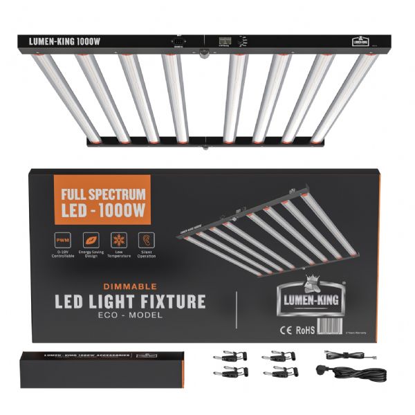 The Lumen King LED Eco-Line 1000W is positioned as one of the most powerful and versatile lighting solutions available on the market. Designed specifically for those aiming to maximise output in large indoor grows, this system combines 1000W rated power with superior quality LED chips, achieving an outstanding efficiency of 2.9 µmol/J.